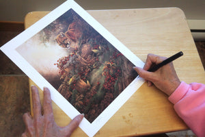 Dans la seconde moitié du 20e siècle, des compagnies américaines spécialisées dans l’édition de photolithographies à tirage limité font de la peinture animalière un gros business. Le marché de la reproduction se développe parallèlement à celui de la vente des tableaux originaux, mais aux yeux de certains puristes, le marchandage des reproductions jette un discrédit sur l’art animalier. Pour éviter tout dérapage risquant d’associer leur art à la controverse du trop commercial, Monique et Gisèle permettent chaque année la reproduction d’un nombre restreint de tableaux originaux. Elles le font essentiellement pour rendre accessibles certains produits dérivés de leur art à toutes les bourses, et surtout, pour financer les projets de la Société Art et Science pour la Nature (SAS Nature), un organisme dédié à la protection de la faune dont elles sont cofondatrices. Les Benoit s’inscrivent ainsi dans une tradition bien ancrée dans le monde de la conservation de la nature depuis des décennies : le financement de nombreux organismes par la vente de reproductions à tirage limité, de timbres fauniques ou de giclées.