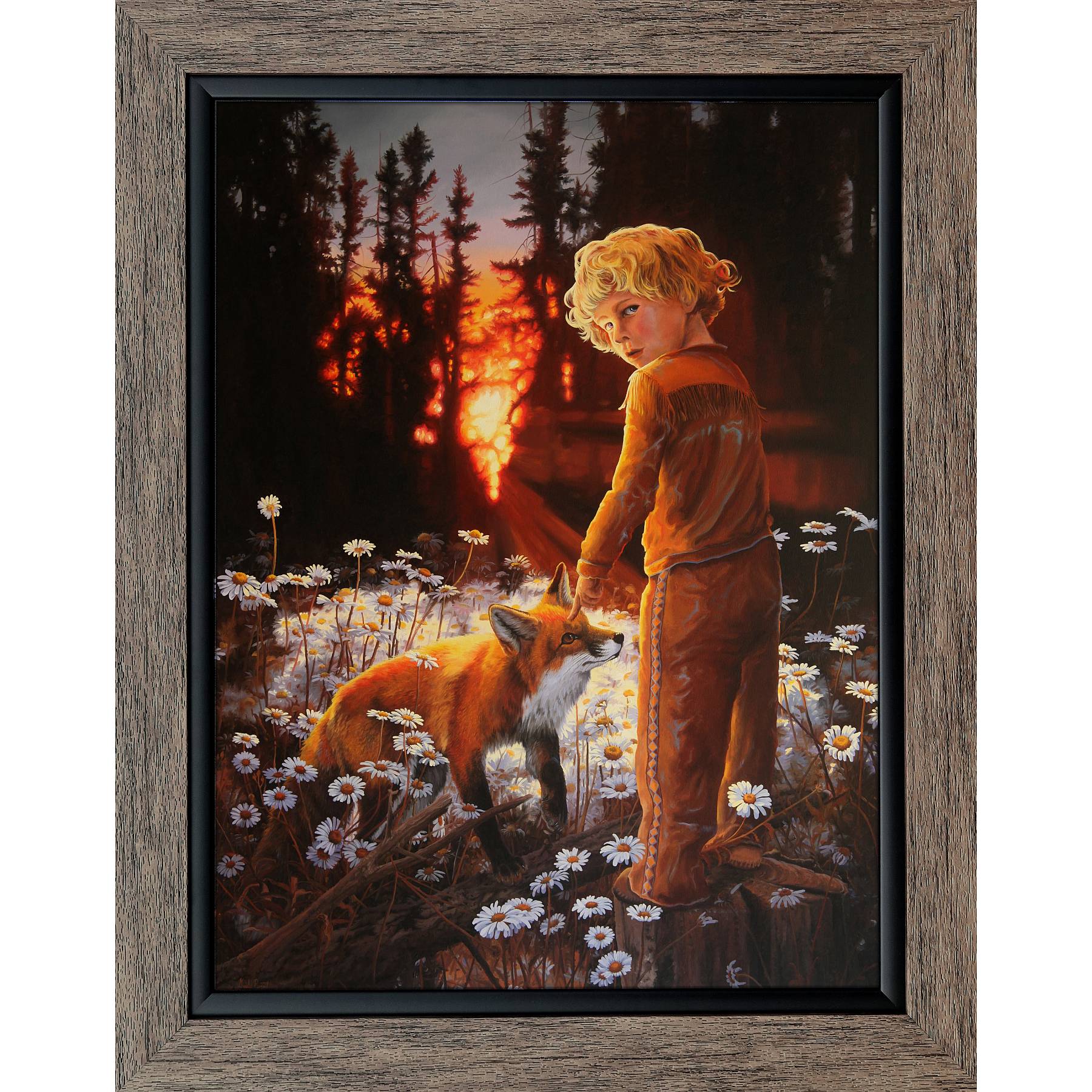 Gisèle dévoile d’autres secrets de ce tableau dans le livre d’art Frisson Sacré du monde sauvage, disponible sur notre boutique. Le tableau original appartient à la collection personnelle de l’artiste et est exposé en permanence au Centre Monique et Gisèle Benoit. Il s’agit d’une huile sur toile de format 48" x 36" (122 cm x 91 cm).