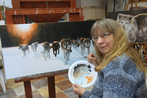 Gisèle Benoit est peintre animalière, naturaliste, vulgarisatrice scientifique, auteure et réalisatrice de documentaires sur la vie sauvage. Elle a offert au public de nombreuses expositions en galerie et en musée, des livres d’art et des documentaires marquants sur la faune boréale. Son travail est reconnu au Canada comme à l’étranger. Depuis 2001, elle se consacre principalement à la protection des prédateurs nordiques comme le loup gris et le lynx du Canada.